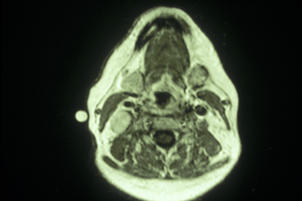 Benign tumours of the neck - benign tumours of salivary gland origin are most common. Schwannoma (usually benign tumour of the tissue covering nerves), neurofibroma (another type of benign nerve sheath tumour) and malignant tumours such as neurosarcoma account for approximately 25% of primary neck tumours, and the paragangliomas (tumours that originate in nerve tissue or near certain nerves and structures of blood vessels; see below) account for approximately 15%. Miscellaneous lumps such as lipoma (see Figure 10) and rhabdomyoma (benign tumour of skeletal muscles) are comparatively rare in the neck.
