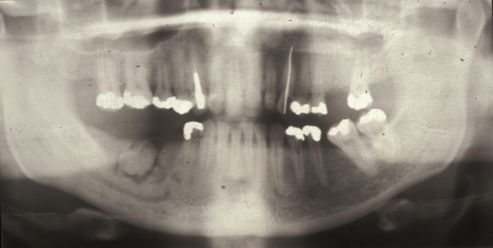 Jaw involvement usually manifests as a hard, painless swelling with a characteristic radiograph appearance of ‘ground glass’ (see Figure 4).