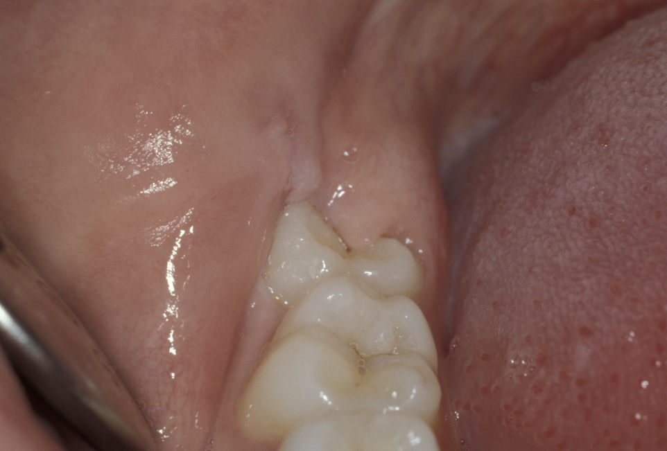 The commonest indication is recurrent pericoronitis. Pericoronitis is inflammation and infection of the mucosal flap (operculum) overlying a partially erupted tooth, usually the lower third molar (Figure 1). Pericoronitis may be acute or chronic.