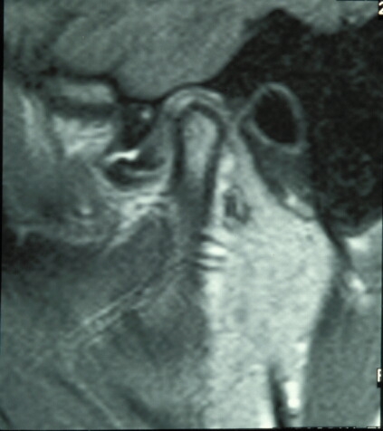Normally when the mouth opens and closes the meniscus moves in harmony with the condyle as it translates along the articular eminence. In certain circumstances, however, this gliding movement is disrupted and the disk may become adherent to the fossa either by fibrous adhesions or by the so-called ‘suction cup effect’. The disk may also change shape. As a result the mandibular condyle is unable to move smoothly and may have to ‘jump’ over the periphery of the disk in order to continue moving. This movement is felt as a click.