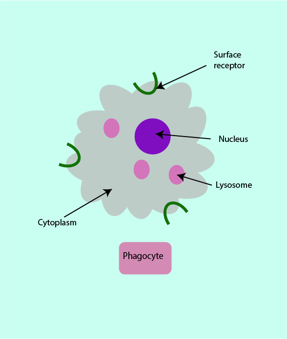 Phagocytes are a type of white blood cells involved in the innate immune response (see Figure 2). Phagocytes can recognise the surface molecules of pathogens through their own surface molecules, called cell surface receptors.