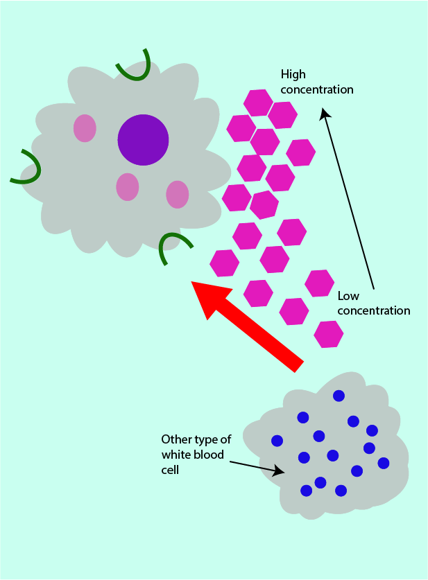 The human body generally makes use of concentration gradients in order to transport and direct a range of materials and cells around the body. In an inflammatory response, the chemokine concentration gradient attracts other types of white blood cells (which can aid the phagocytes in pathogen destruction) to the site of infection.