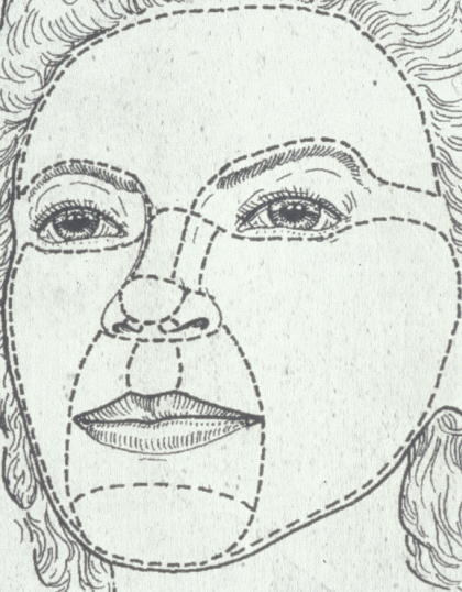 Figure 3 represents the concept of reservoirs of facial spare tissue. Each individual varies, but the temple, cheeks, jowl, nasolabial area and glabella (the area between the eyebrows, above the nose) are characteristic reservoirs of excess tissue, available for local flaps.