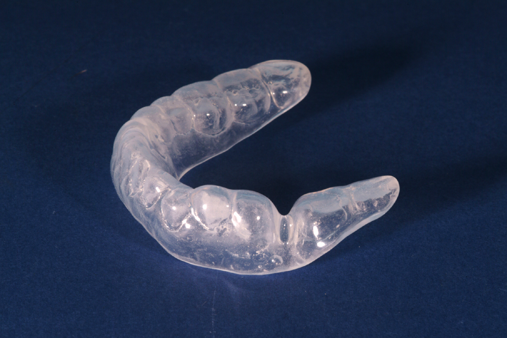 A lower alginate impression is taken and the splint fitted as early as possible. The splint is worn it in the evenings and at night. Benefits are usually apparent after 1 – 2 months of wear. Quite how it works is a matter of conjecture, there being several theories, including a placebo effect. The splint may absorb excessive occlusal forces; it may allow repositioning of the meniscus, it may restore muscle balance or even vertical dimension. Whatever the reason, it eases symptoms in the majority of patients. After 6 – 8 months wearing the splint gradually has to be terminated.
