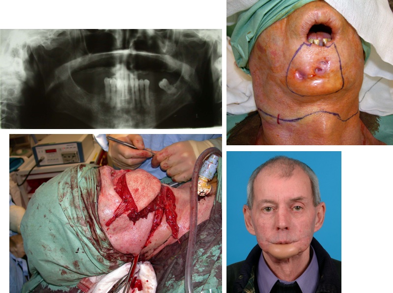 Extended ONJ lesions, most commonly affecting the mandible, require extensive resections where reconstruction of the resection defect by hard and / or soft tissue microvascular free flaps is necessary, especially ORN lesions (Figure 3).