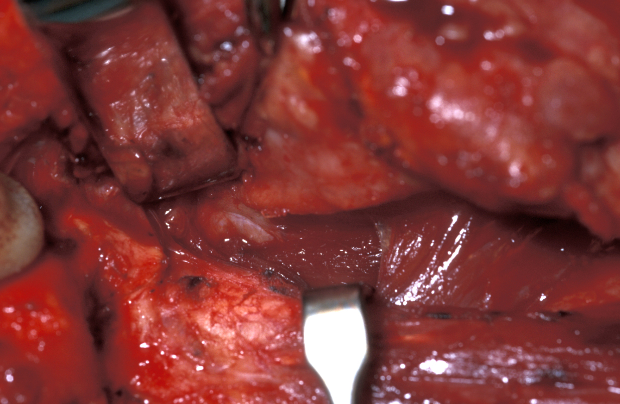 Once the facial nerve is identified the dissection should take place along the plane of the nerve lying just superficial to it (see Figure 12).